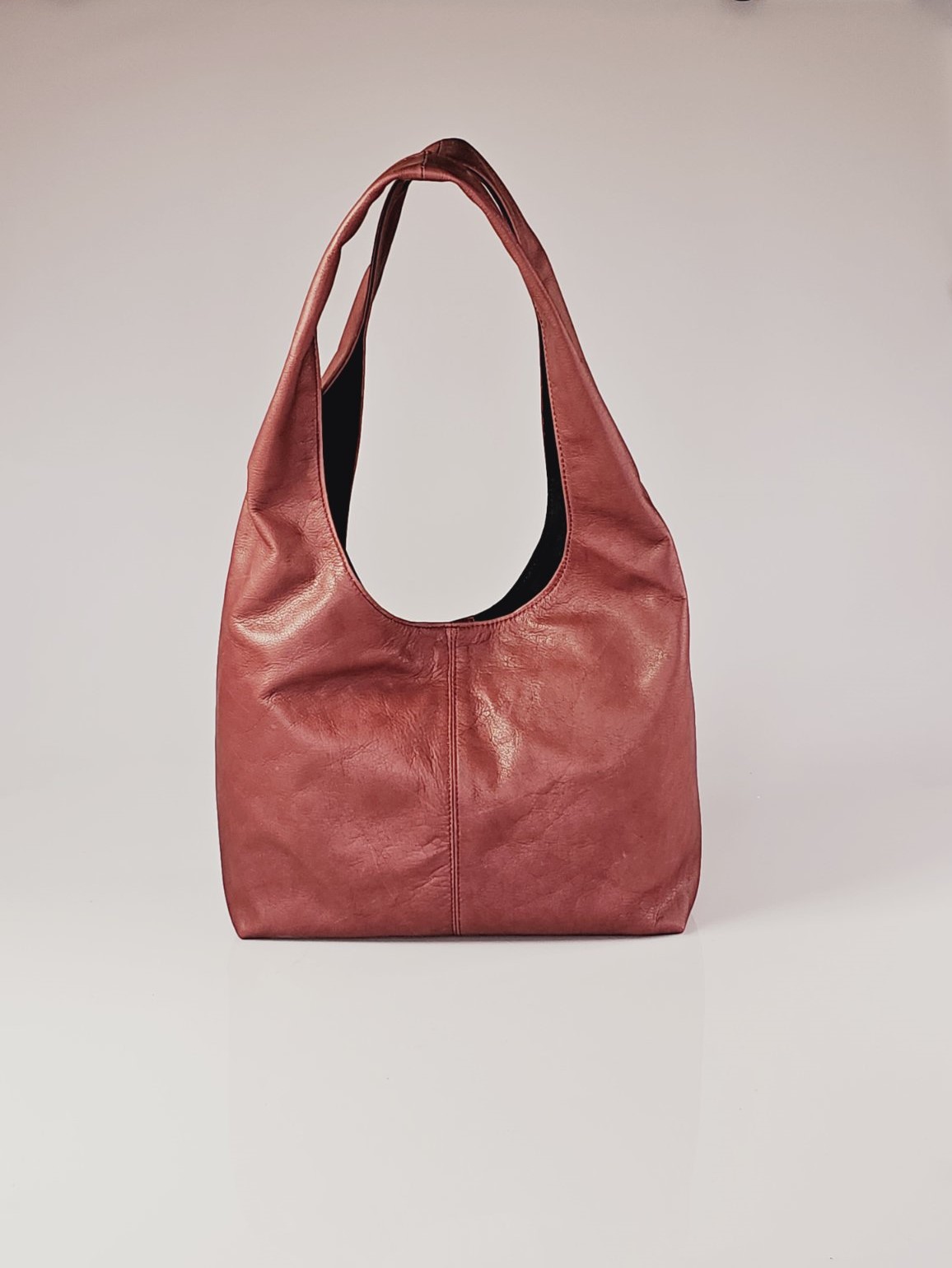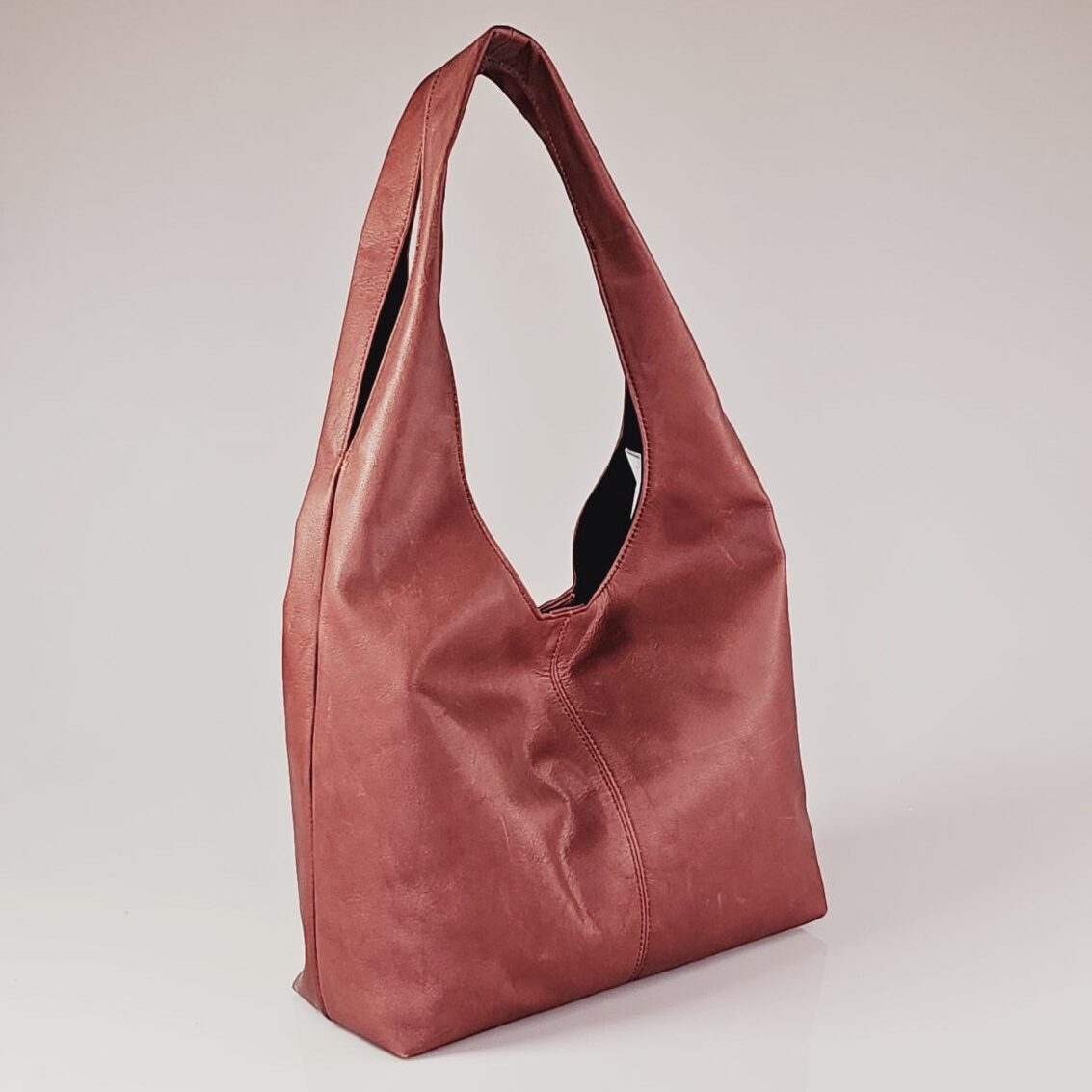 Women’s handmade shoulder bag burgundy colour leather. Internal main spaces with a helping cases. Closing with magnetic button.Dimensions: Length:28 cm ,Width:11 cm and height: 22 cm. Made and designed in GREECE. Delivery to 10 days.