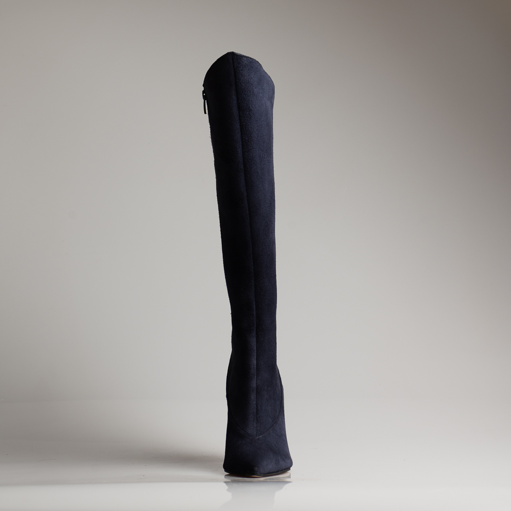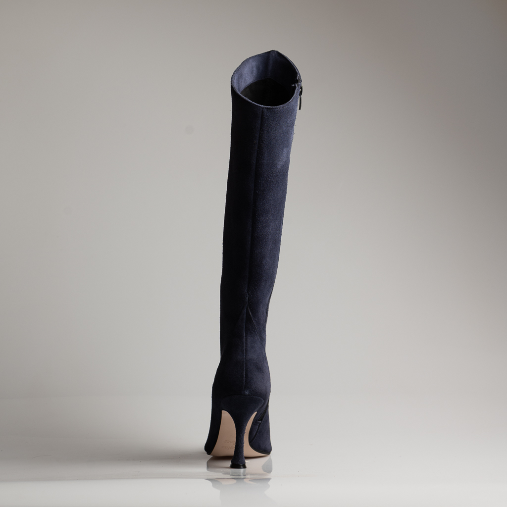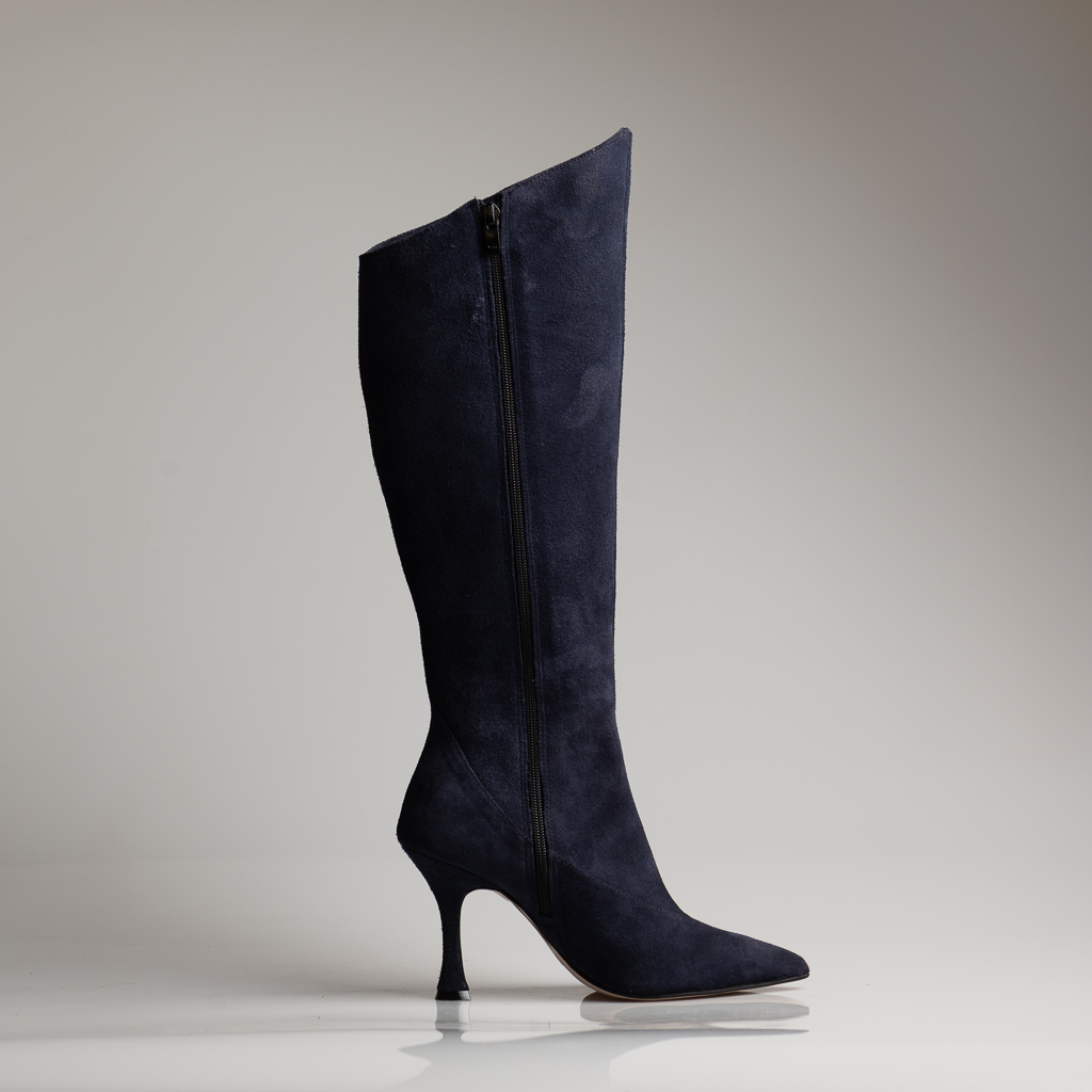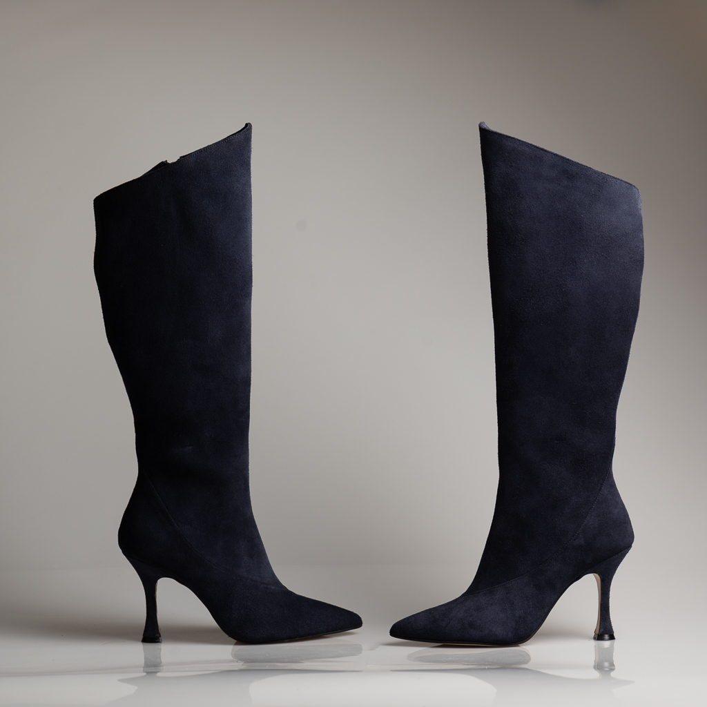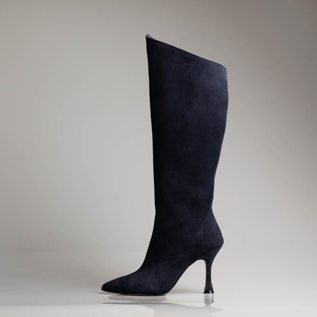 Handmade blue suede leather boot . 8.5cm heel with non-slip sole and regular shape.