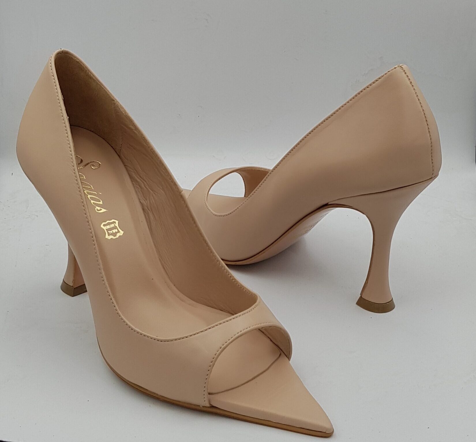 Nude leather inside out. 8,5 cm heel, with non slip sole and regular shape.