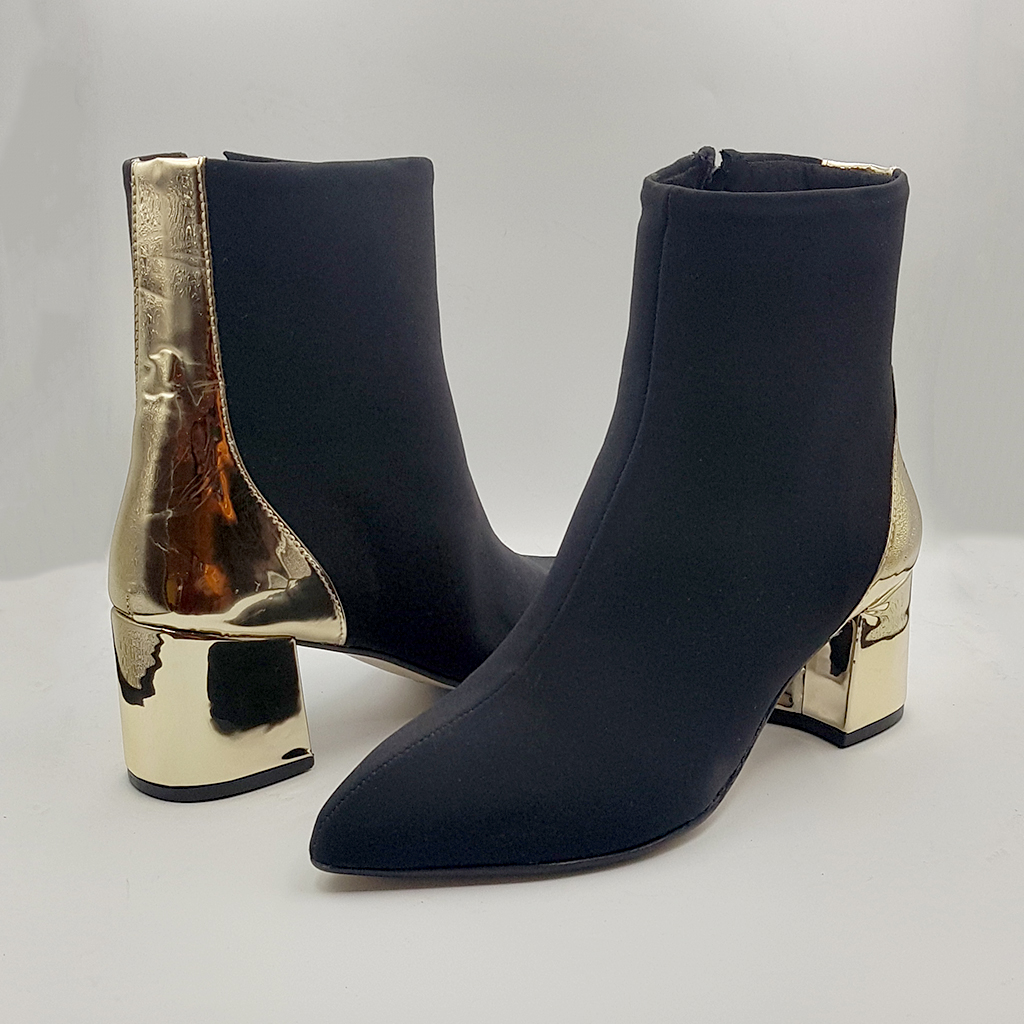 Black lycra with gold LC, non-slip sole and 5.5cm heel.