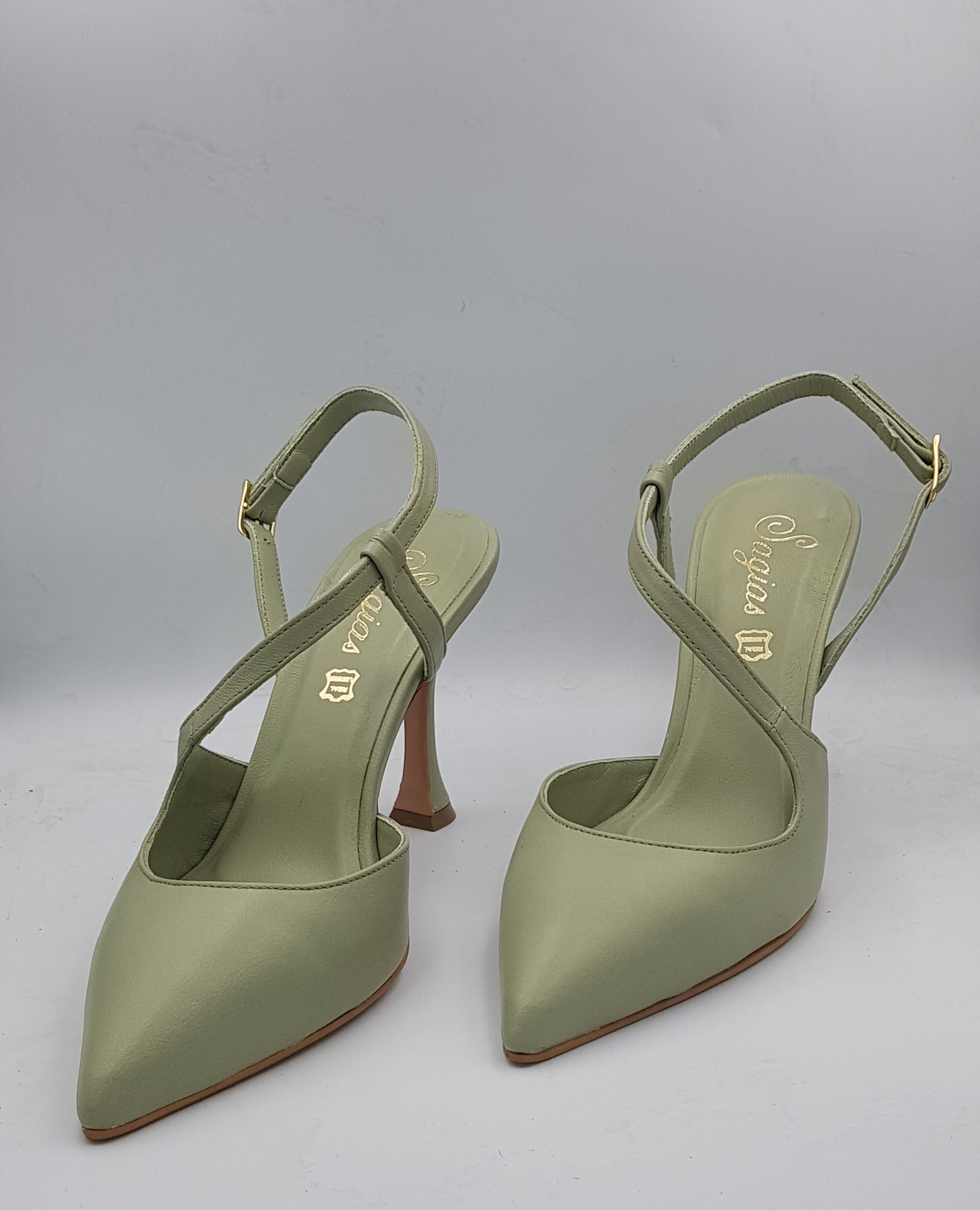 Pistachio leather inside out. 8,5 cm heel,with non slip sole and regular shape.