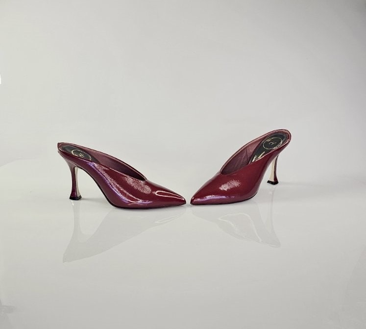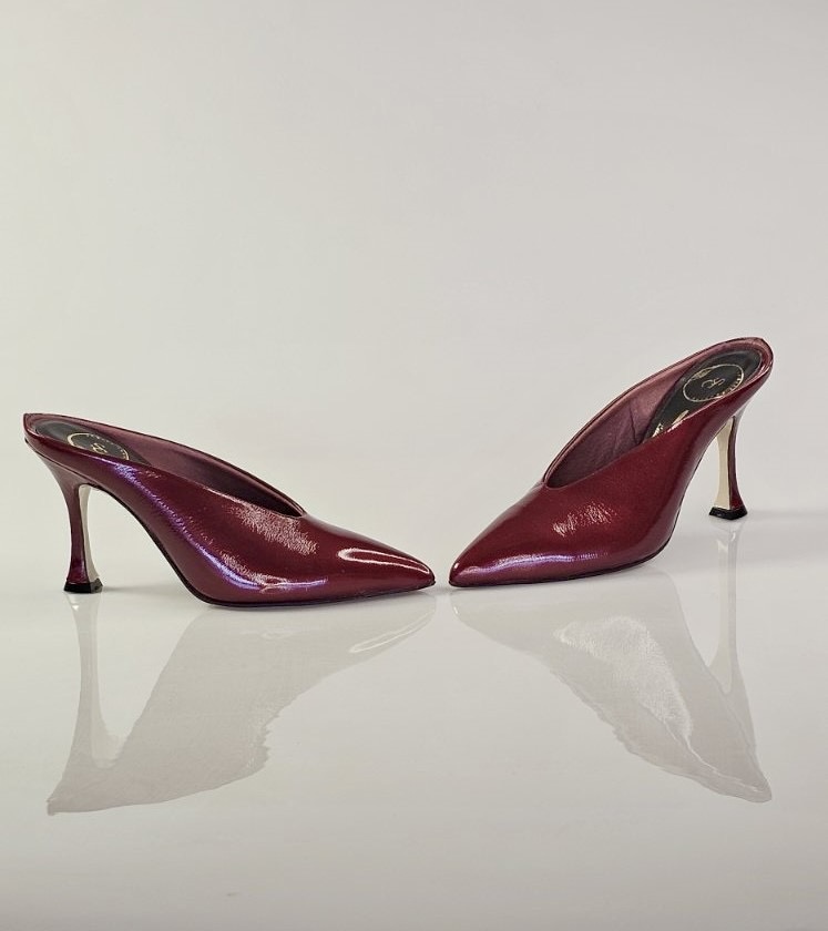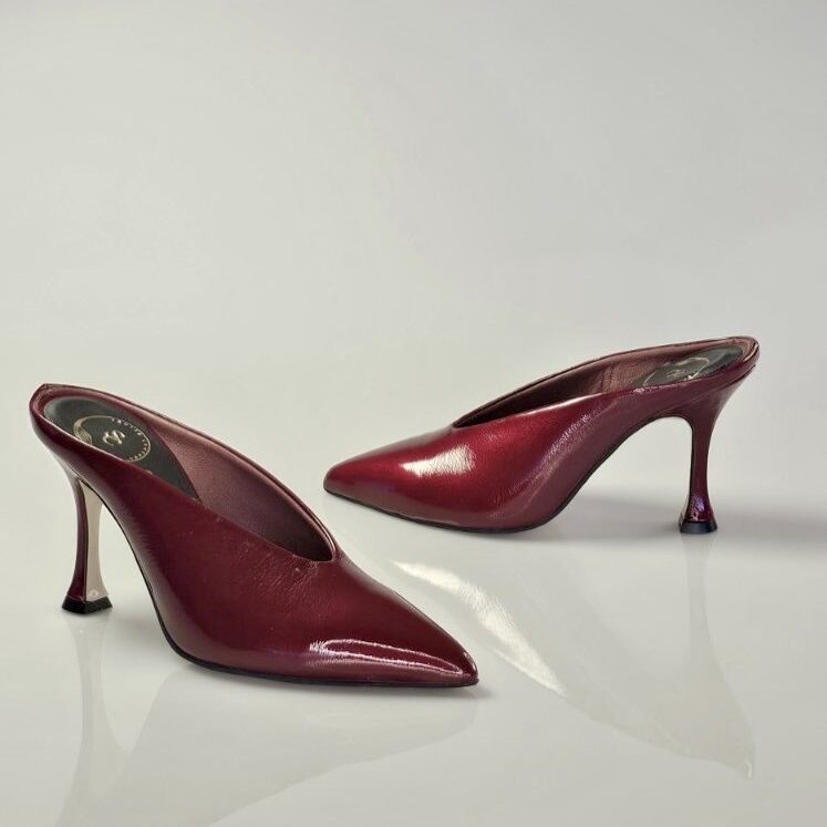 Κόκκινο perle δέρμα μέσα έξω.8,5 cm τακούνι ,αντιολισθητική σόλα και κανονική φόρμα.