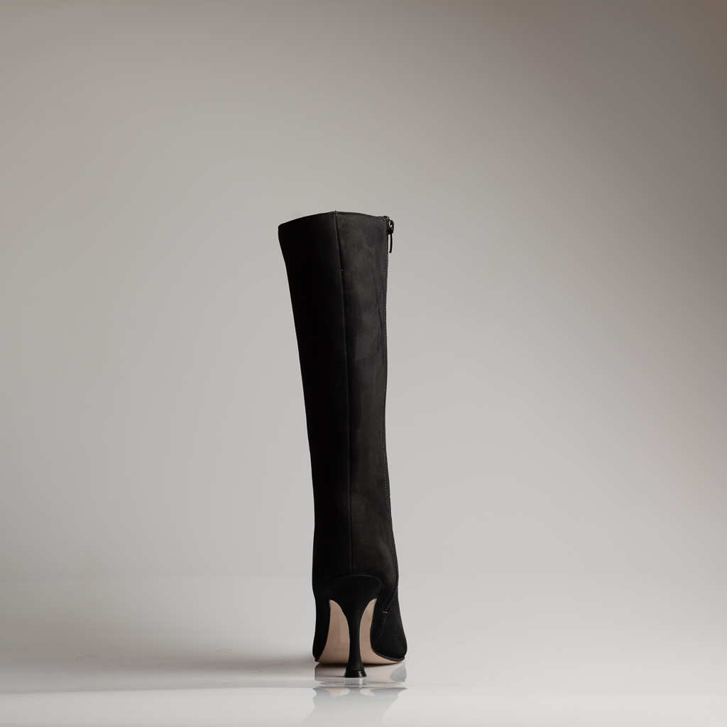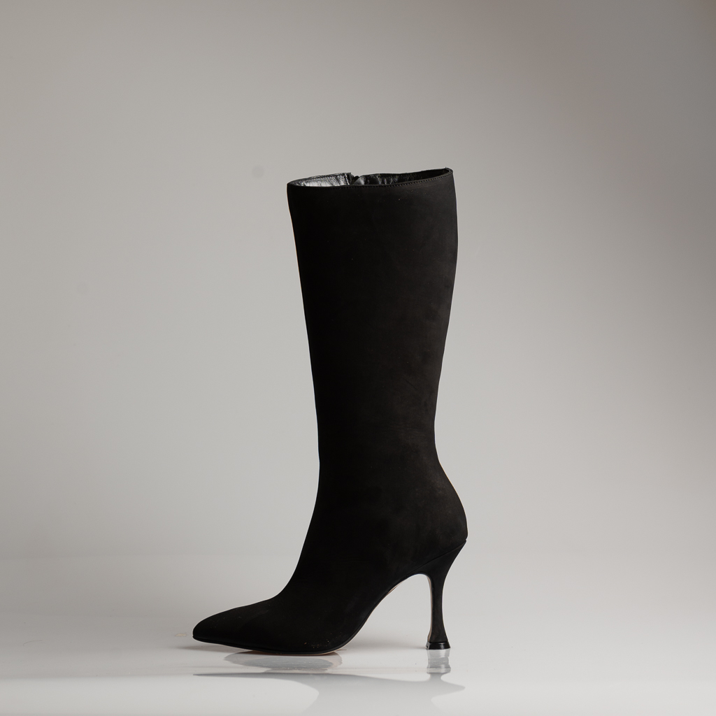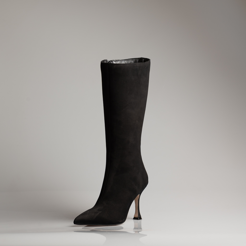 Χειροποίητη Μπότα από μαύρο suede . 8.5cm τακούνι με αντιολισθητική σόλα και κανονική φόρμα.