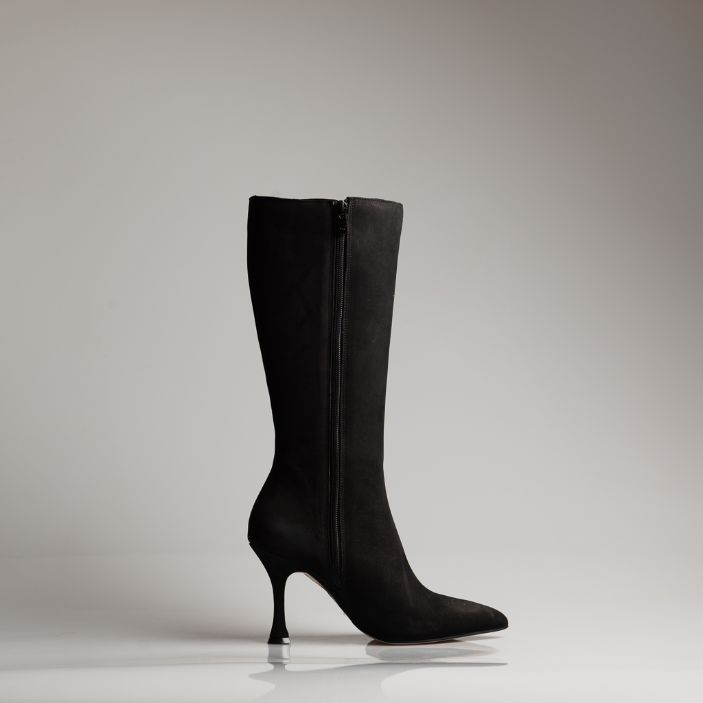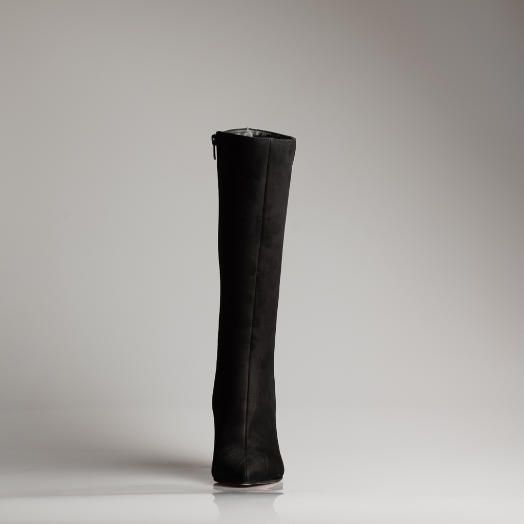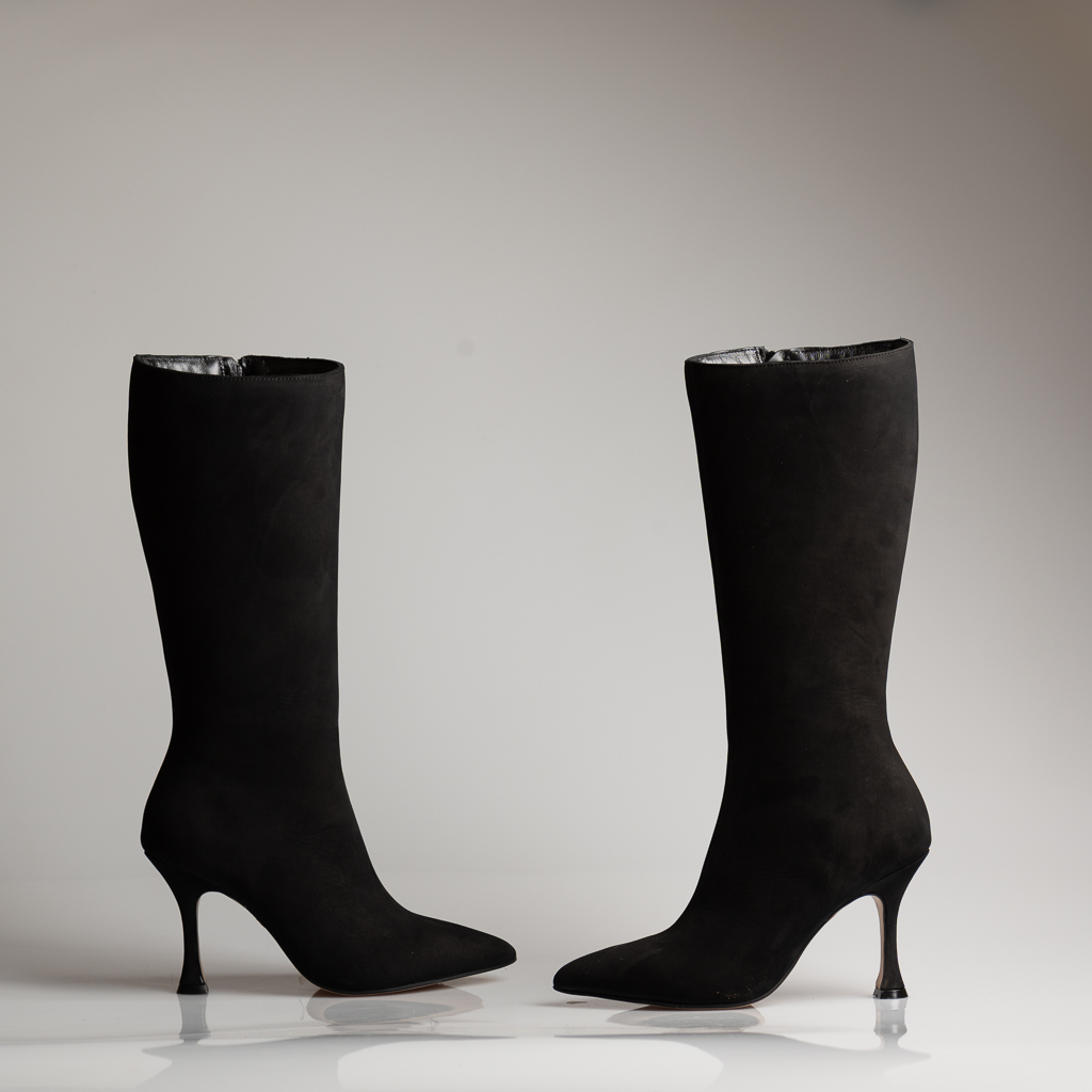 Χειροποίητη Μπότα από μαύρο suede . 8.5cm τακούνι με αντιολισθητική σόλα και κανονική φόρμα.