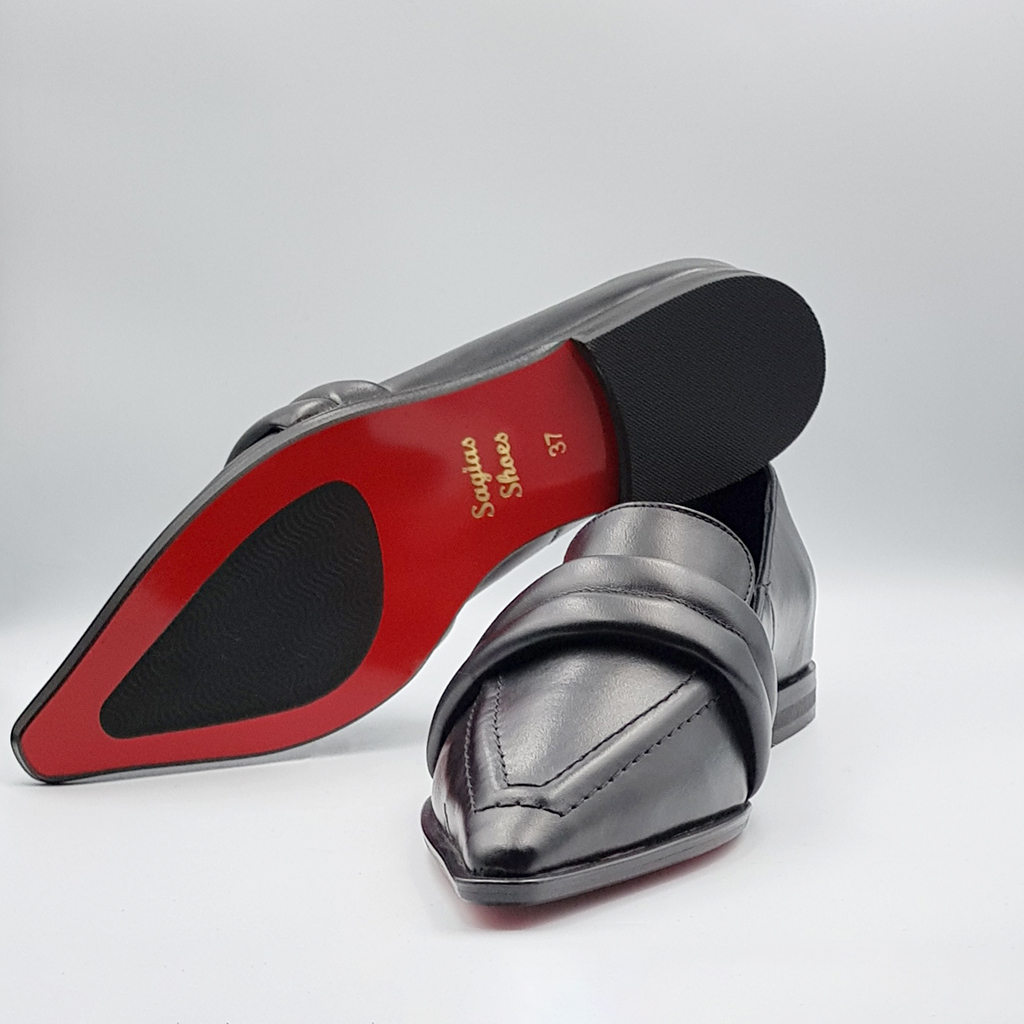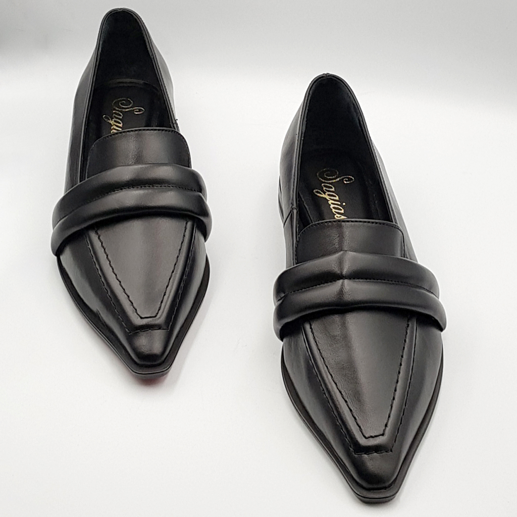 Μαύρο δέρμα μέσα – έξω, 1.5cm τακούνι, αντιολισθητική σόλα και κανονική φόρμα.