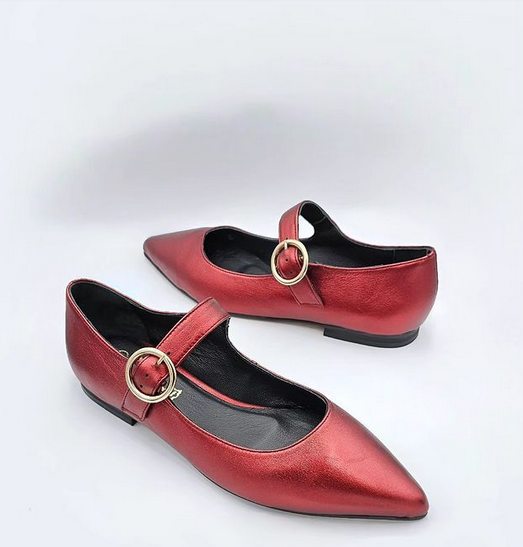 Κόκκινο δέρμα με δερμάτινη εσωτερική επένδυση.1,5 cm τακούνι, αντιολισθητική σόλα και κανονική φόρμα.