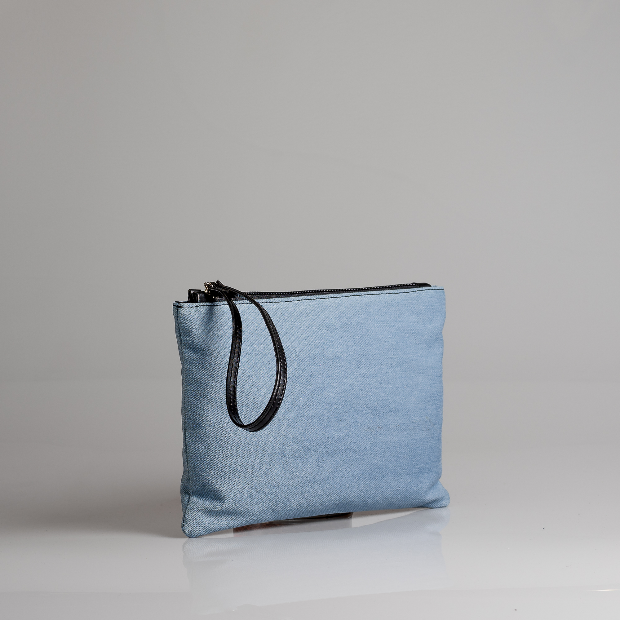 Γυναικεία χειροποίητη τσάντα καρπού από jean δερμα .