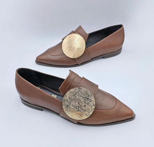 Καφέ δέρμα μέσα – έξω, 1.5cm τακούνι, αντιολισθητική σόλα και κανονική φόρμα.