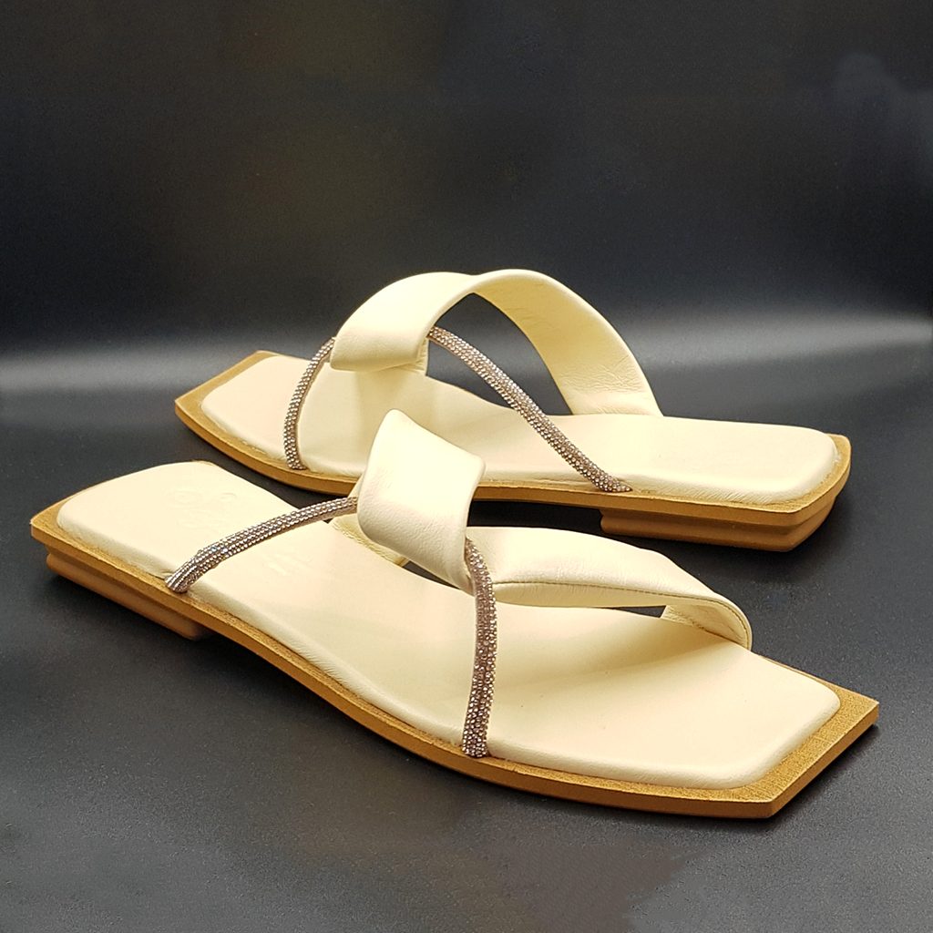 Δερμάτινο παπούτσι χρώμα κρέμ , αφρώδης πάτος.