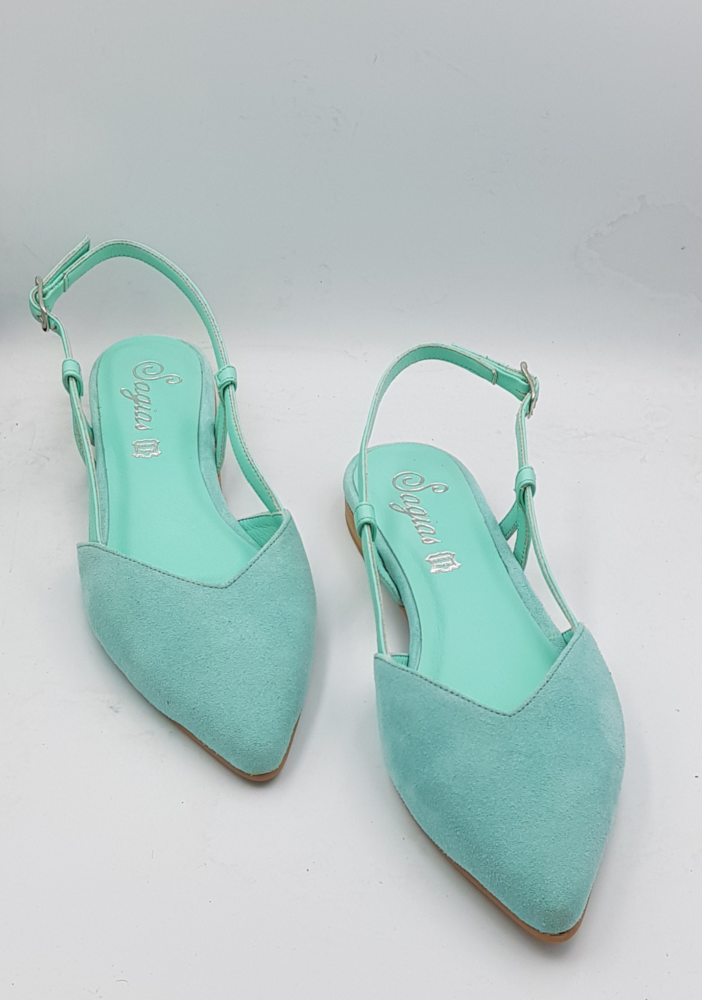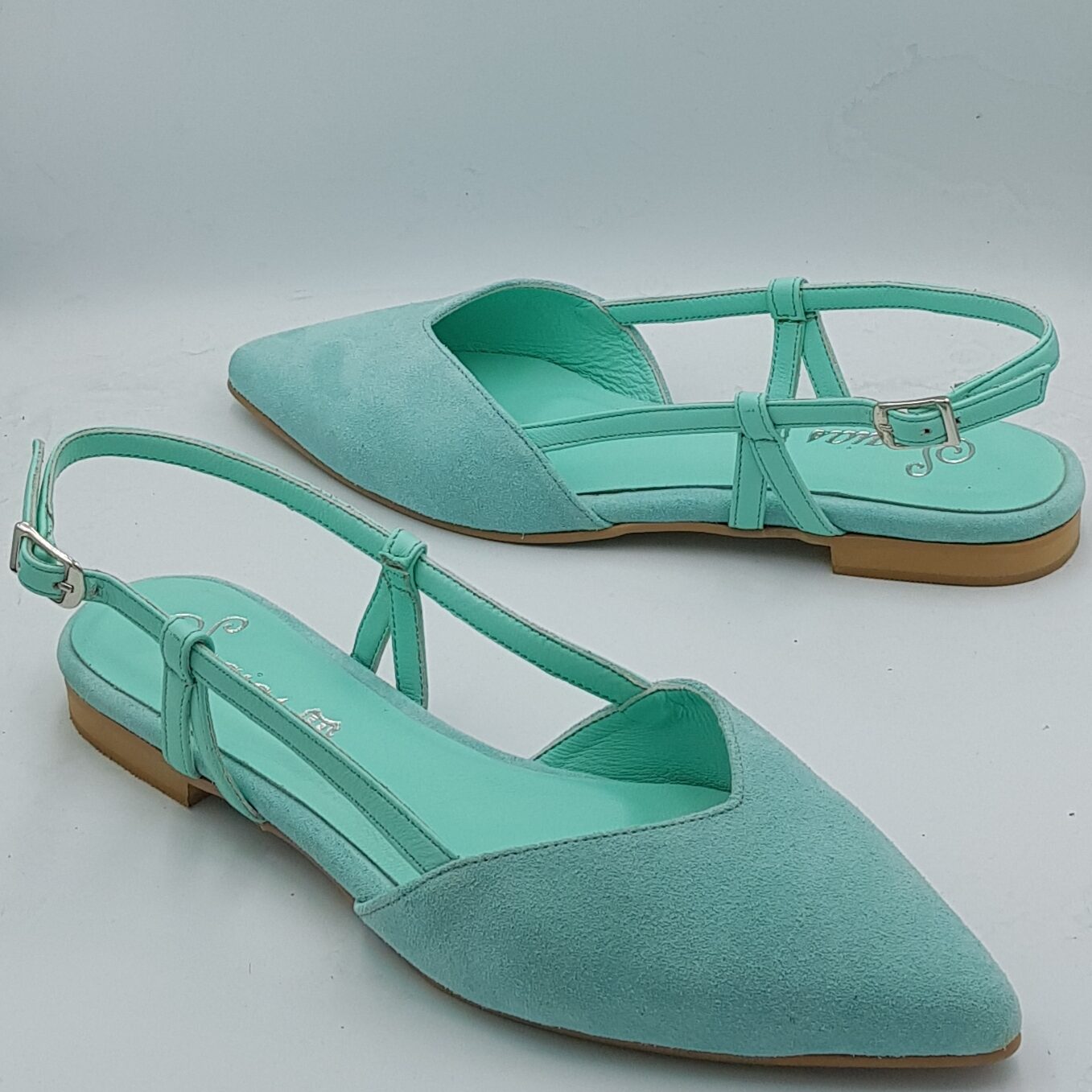 Τιρκουάζ καστόρι. 1,5 cm τακούνι με αντιολισθητική σόλα και κανονική φόρμα.