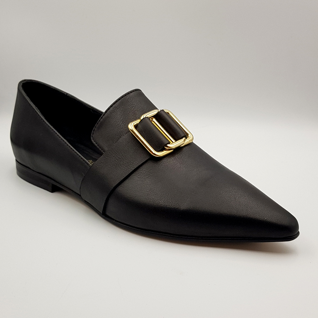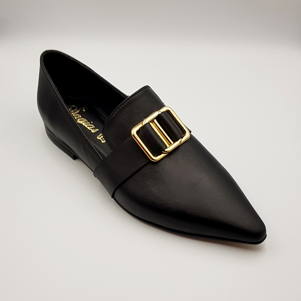 Μοκασίνι καρέ μαύρο δέρμα μέσα – έξω, 1.5cm τακούνι, αντιολισθητική σόλα και κανονική φόρμα.