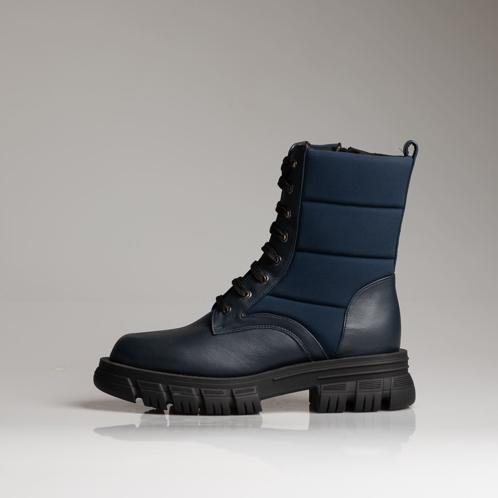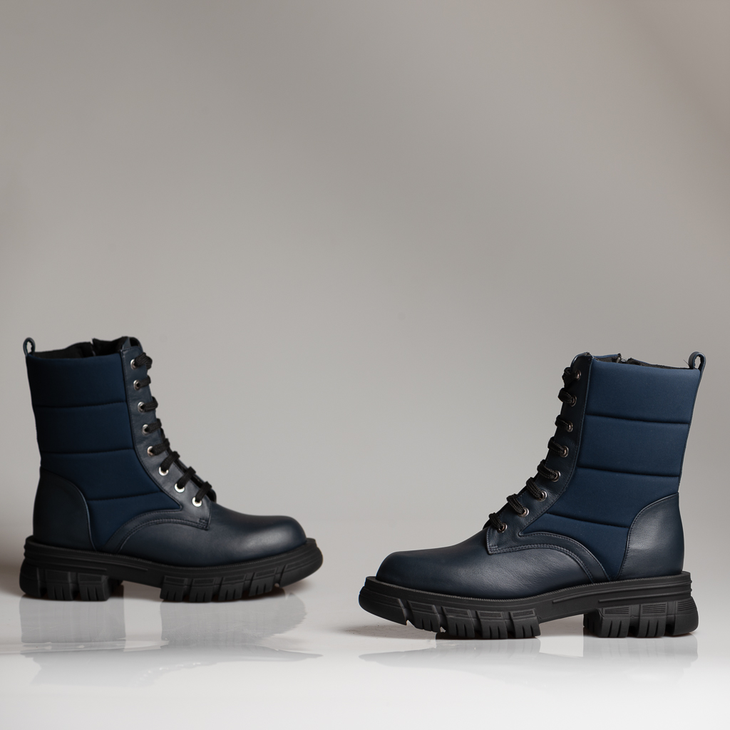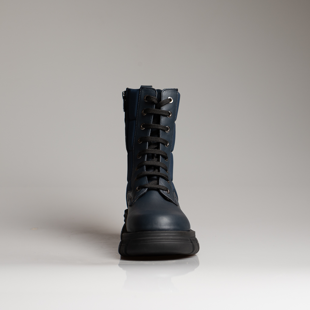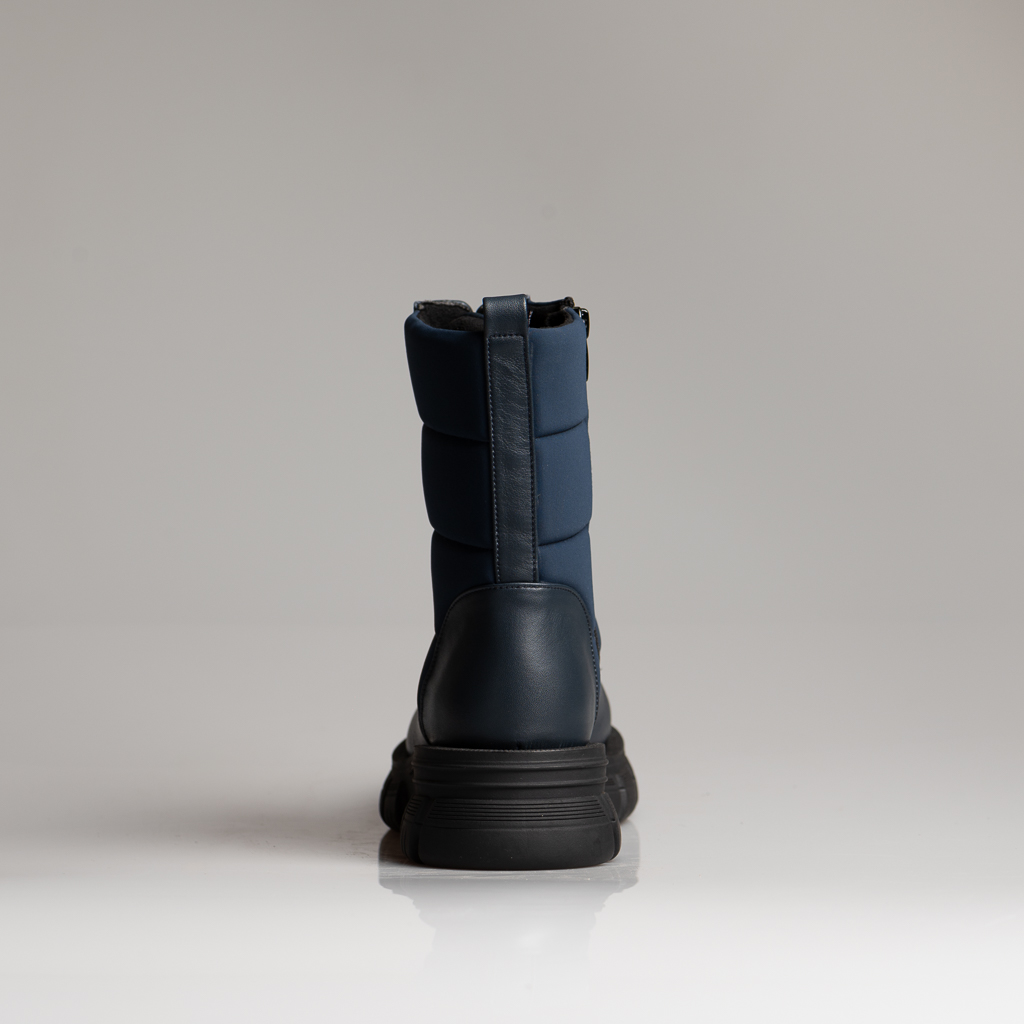 Χειροποίητο Μποτάκι bike puffer σε σκούρο μπλε δέρμα.Διαθέτει αντιολισθητική σόλα και κανονική φόρμα.